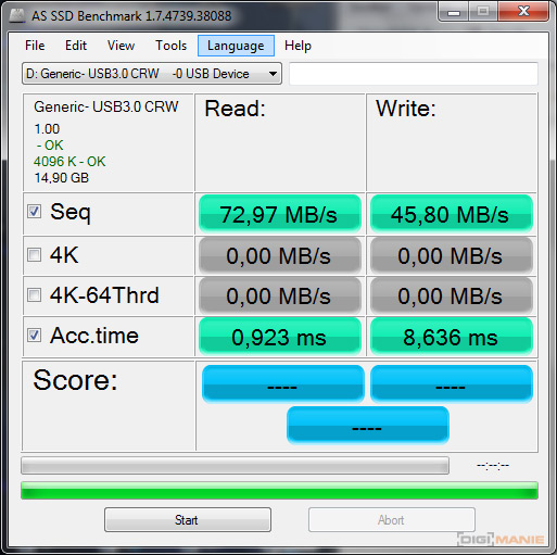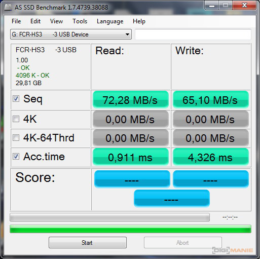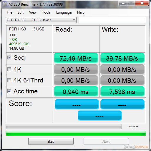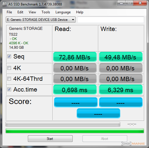 A-Data Premier microSDHC 32 GB AS SSD Benchmark 3 |