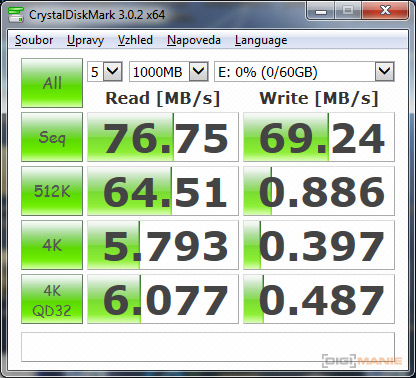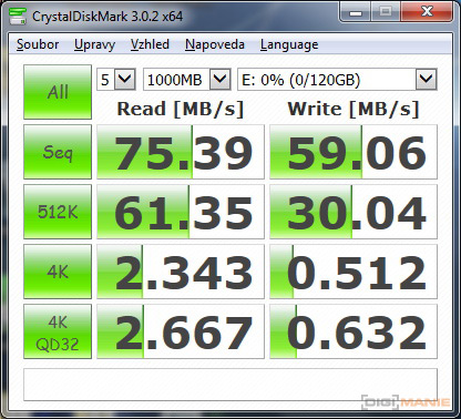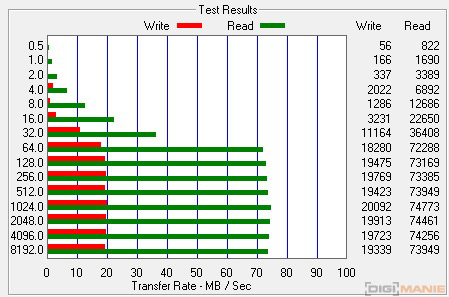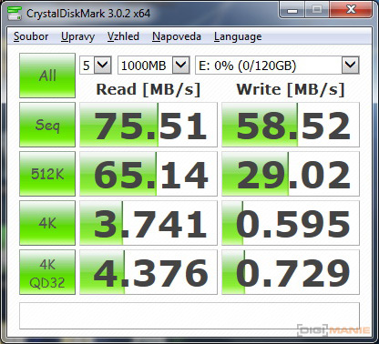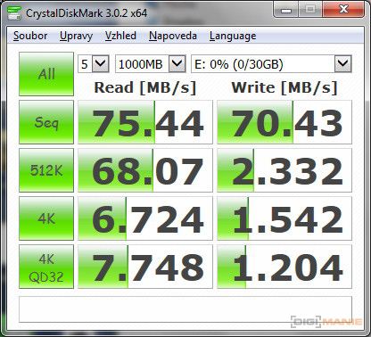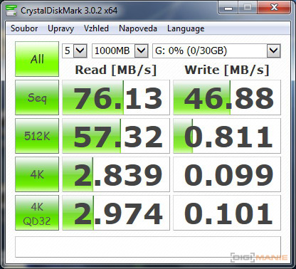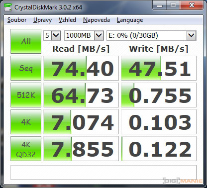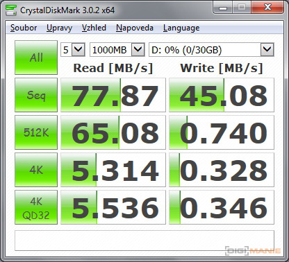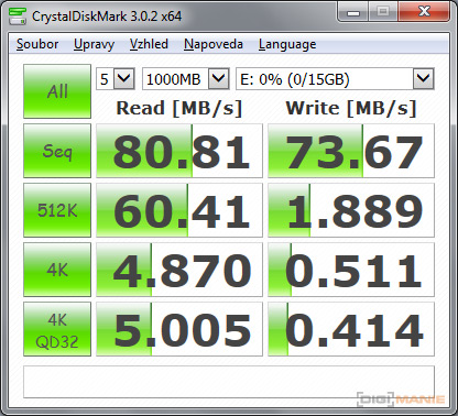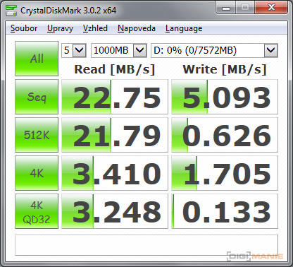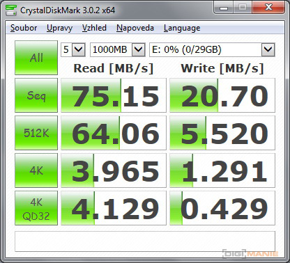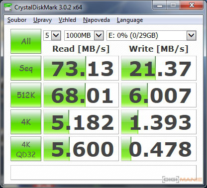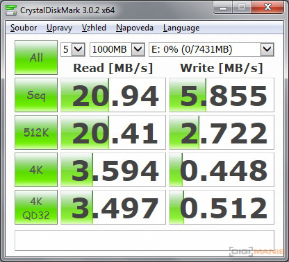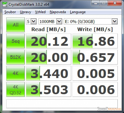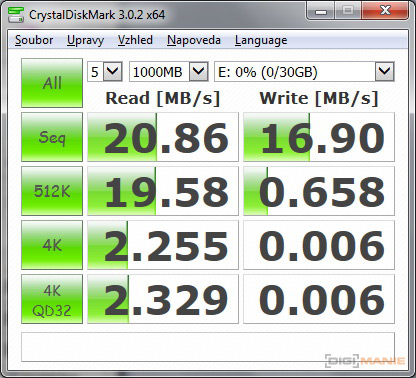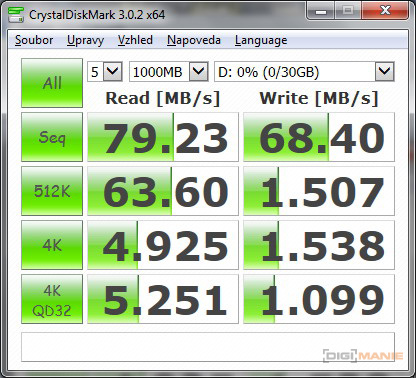 Graf rychlosti zápisu paměťových karet |