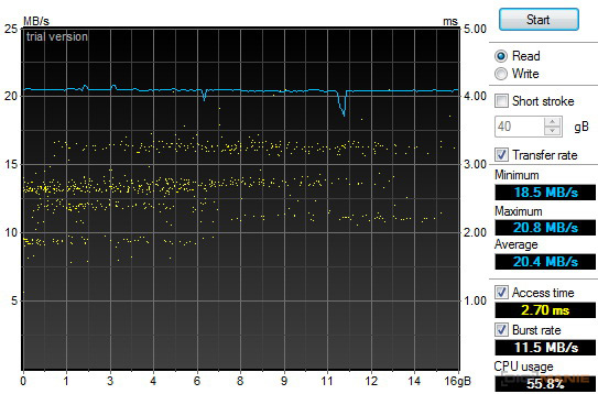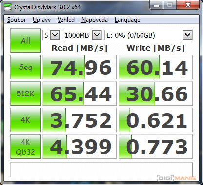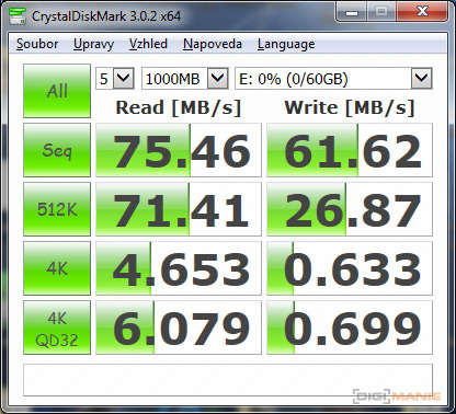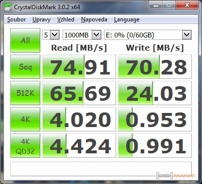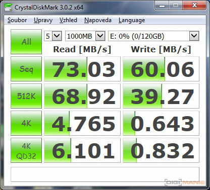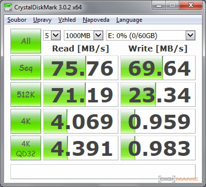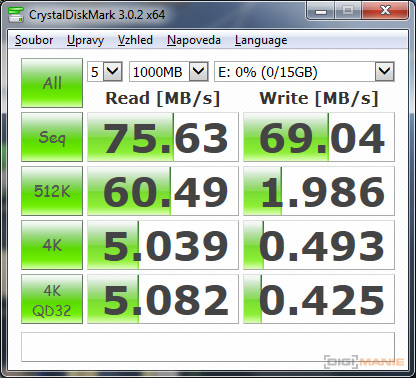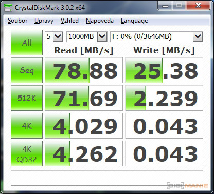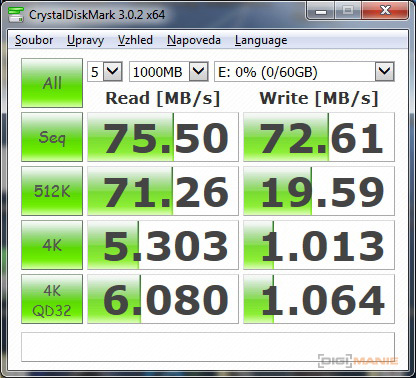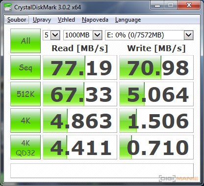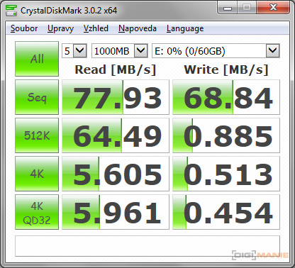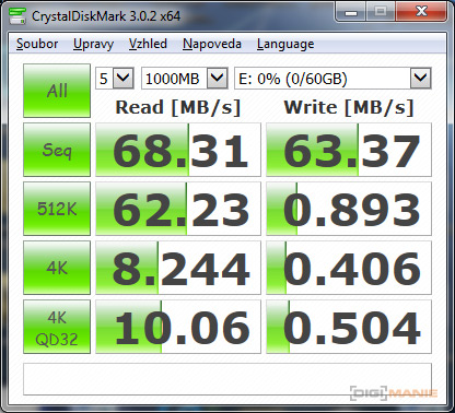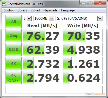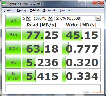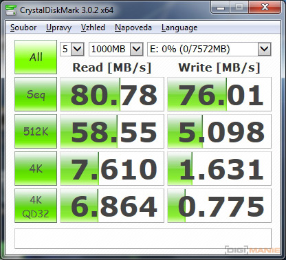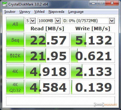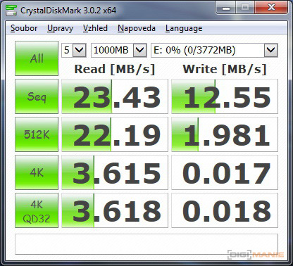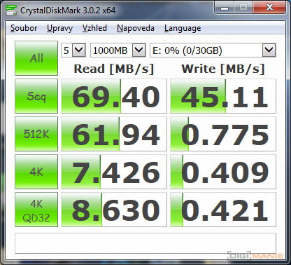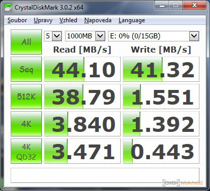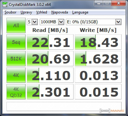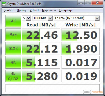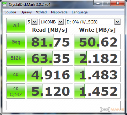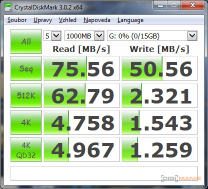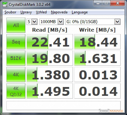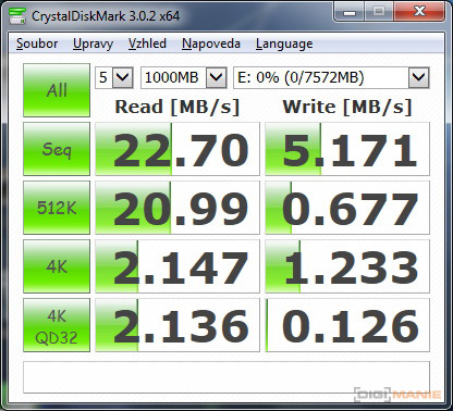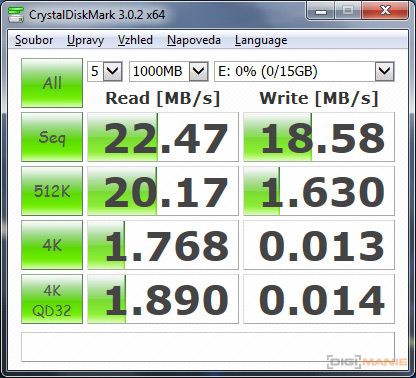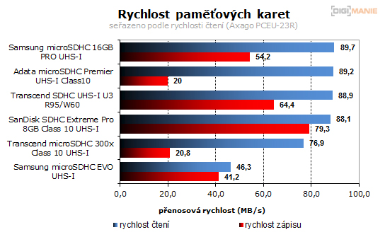 Graf rychlosti čtení paměťových karet |