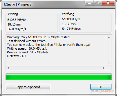 Samsung EVO microSDHC 32 GB H2testw 2 |