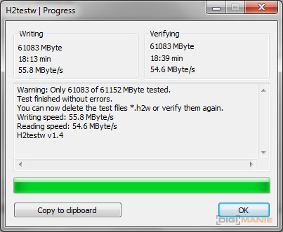 Kingston React SDXC 64GB H2testw HS3 |
