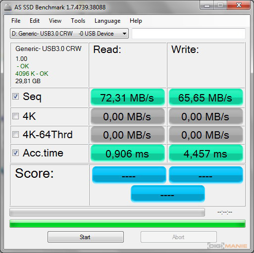A-Data Premier microSDHC 32 GB AS SSD Benchmark 1 |