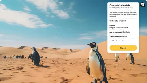 Adobe zavádí do svých produktů pro Content Credentials. Jde o jakýsi "vodoznak", který obsahuje zároveň informace o autorovi a změnách provedených v obsahu. Má sloužit i ke zveřejňování informací z aplikací generativní AI.